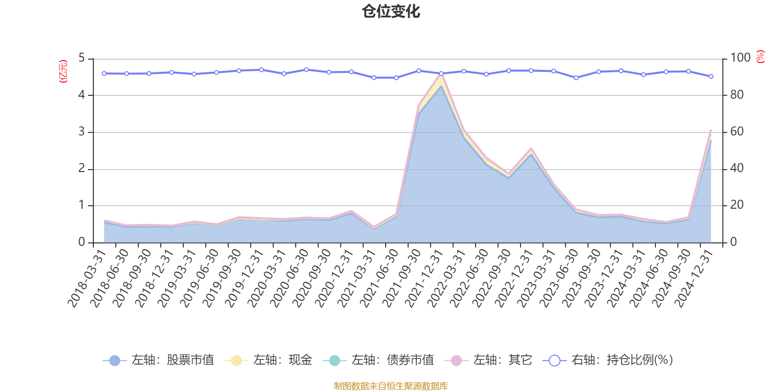 据定期报告数据统计,近三年平均股票仓位为92.37%,同类平均为84.67%。2020年上半年末基金达到94.04%的最高仓位,2023年上半年末最低,为89.59%。